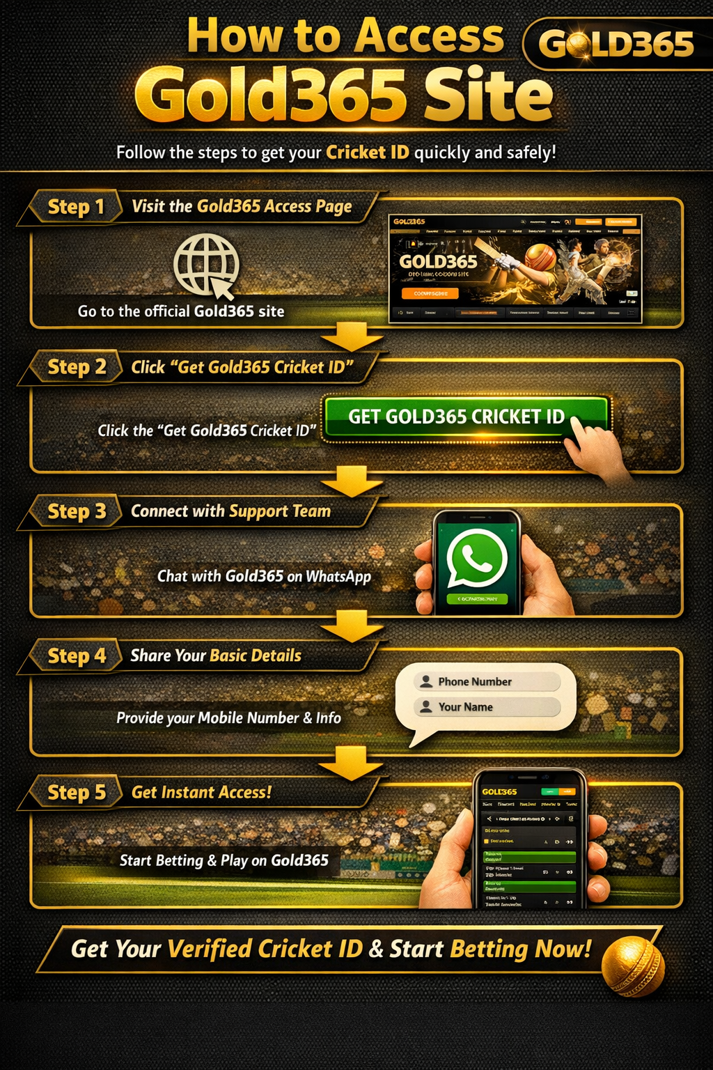 Once your details are verified, your Gold365 Cricket ID will be created instantly, allowing you to access the Gold365 site, explore live betting markets, and start betting on cricket and other sports.